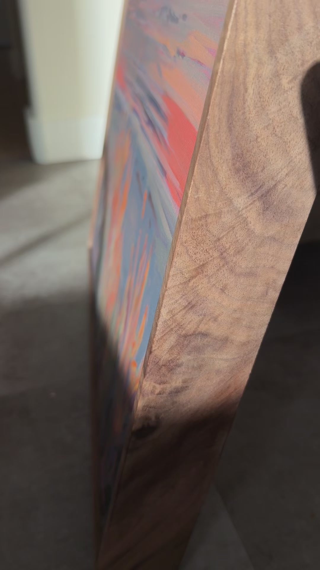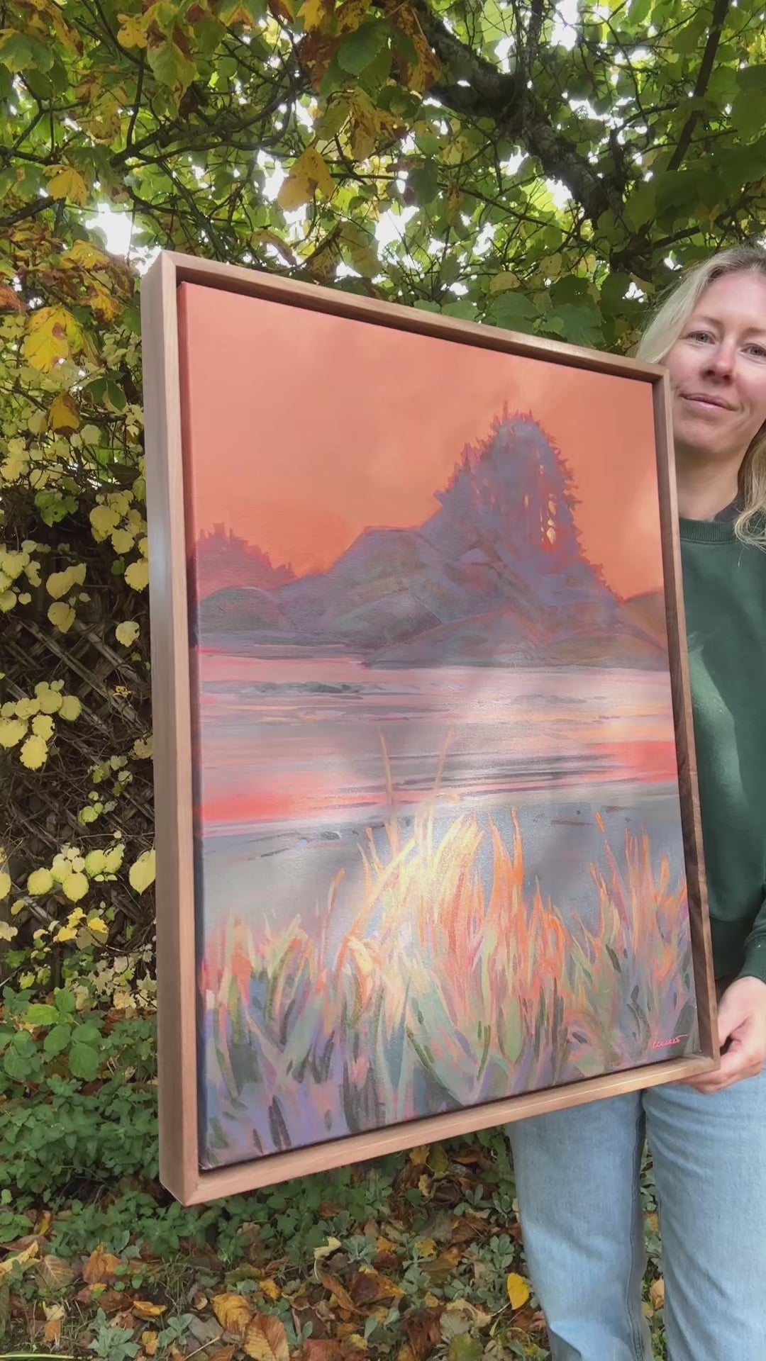 This 24 x 18 inch original acrylic on canvas by Canadian west coast landscape artist, Christina Clarke, includes a custom natural walnut float frame and is finished with a protective varnish. Arrives ready to hang.